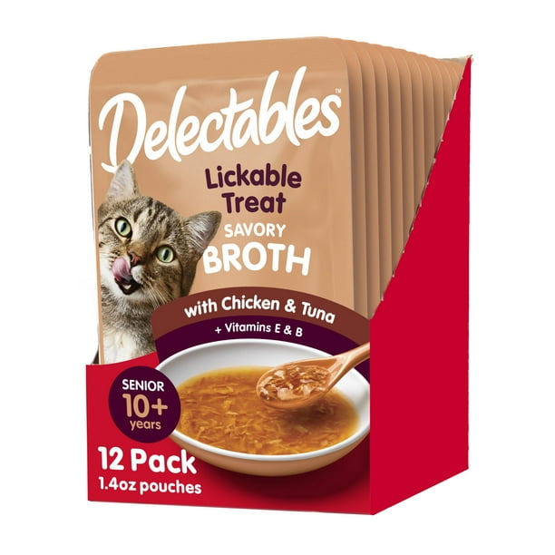 Hartz Delectables Savory Broths Senior 10 Chicken Tuna Flavor Wet Treat For Cats 1 4oz Pouch 12 Pack Walmart Com